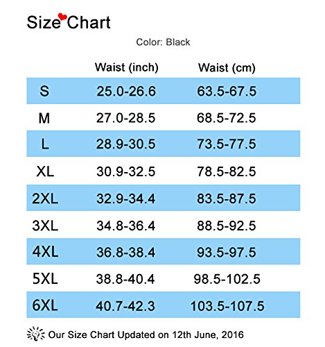 Size Chart(inch) S/Waist: 25.0-26.6 M/Waist: 27.0-28.5 L/Waist: 28.9-30.5 XL/Waist: 30.9-32.5 2XL/Waist: 32.9-34.4 3XL/Waist: 34.8-36.4 4XL/Waist: 36.8-38.4 5XL/Waist: 38.8-40.4 6XL/Waist: 40.7-42.3