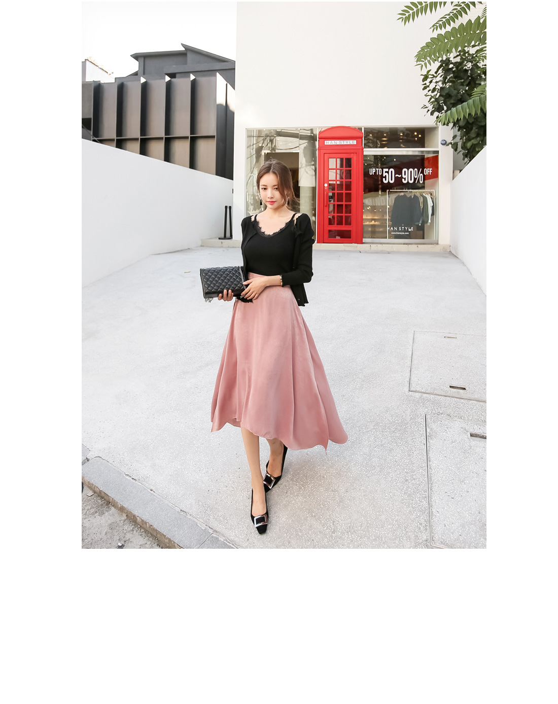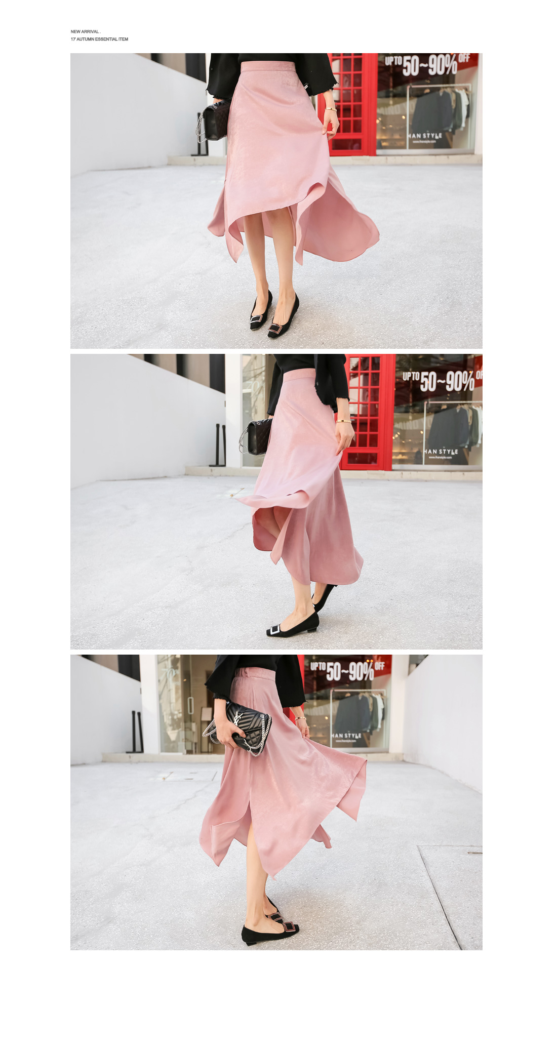 블라우스, 니트티, 티셔츠 등 다양한 상의들과 매치하여 여러가지 분위기로 스타일링하기 좋으며 군살을 커버해주는 플레어 실루엣으로 입었을때 더욱 예쁜 스커트 아이템이랍니다.