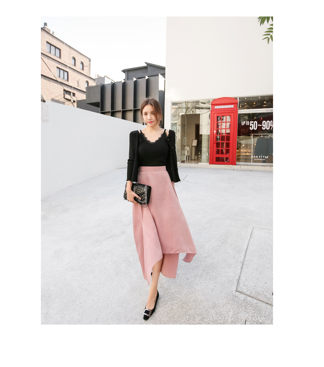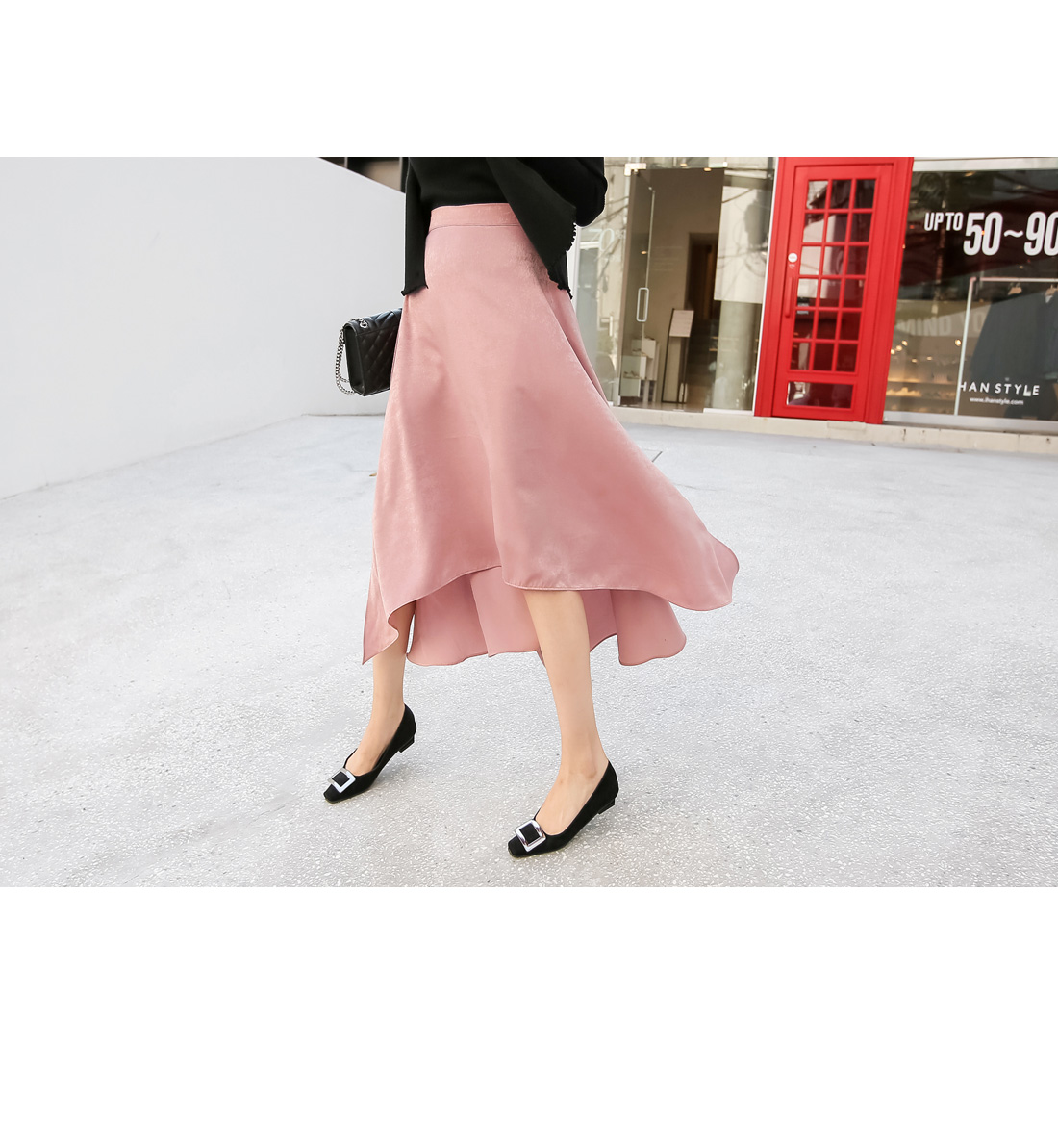 플레어 라인의 언발 컷팅 스커트를 소개합니다.