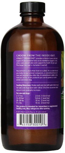 DreamCoat provides a blend of pure oils that supply all the essential omega fatty acids needed to support a full, shiny coat, smooth skin and the health of your pet. The longer you use it, the better it works.