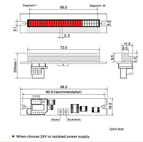 Generic 30seg 66mm LED Bargraph VU Audio Meter Module with Bar or Dot Display