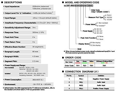 Vu LED bargraph meter modules can accept and interpret audio signal and programme signal which is transmitted by lines and generate audio level for display. The module can achieve vu volume meters bar display or dot display and levels peak hold is optional. Sensitivity of transmission channel can be adjusted by the parts on module, so displays dynamic range can be adjusted easily.
