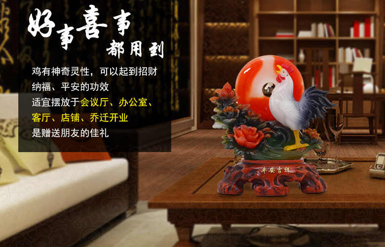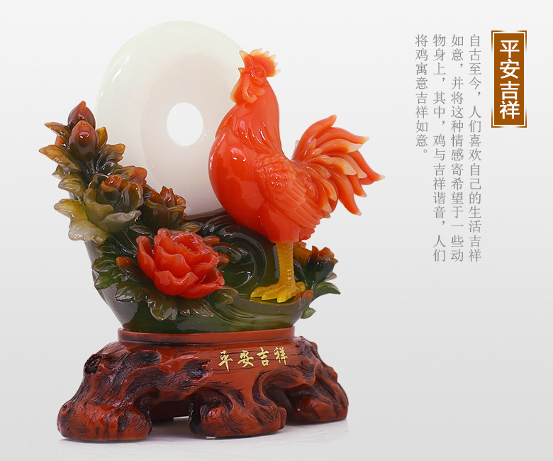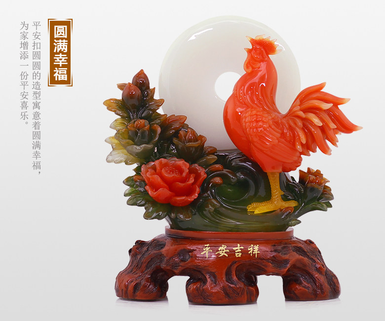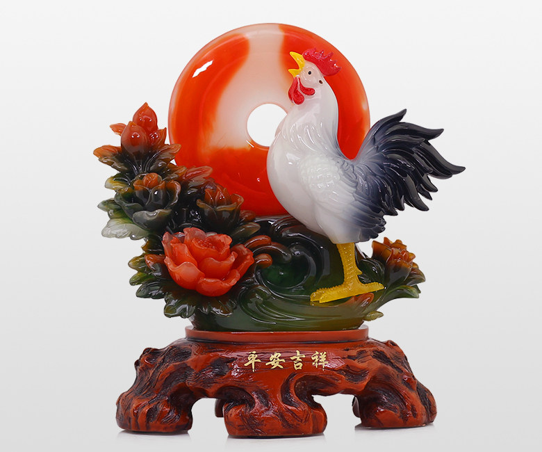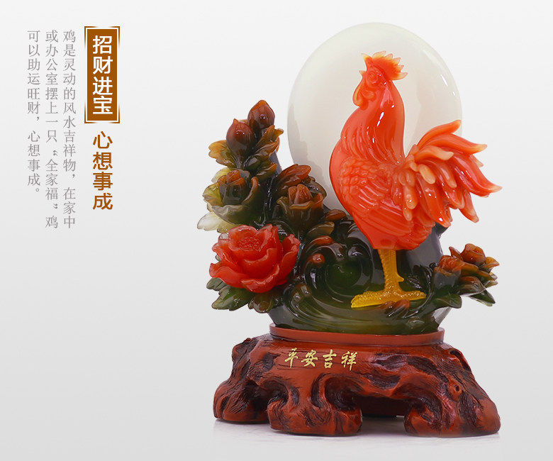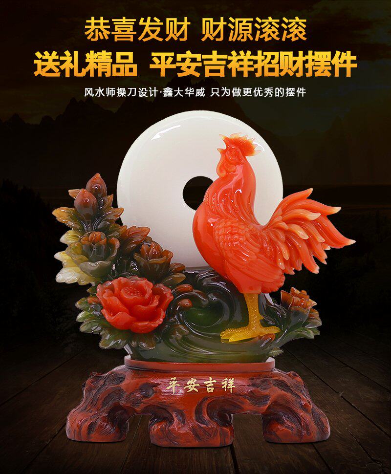 招财公鸡摆件十二生肖鸡风水家居客厅摆件平安扣鸡摆设鸡年吉祥物