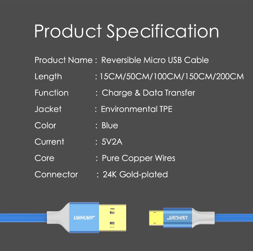 Product Name:Reversible micro usb cable