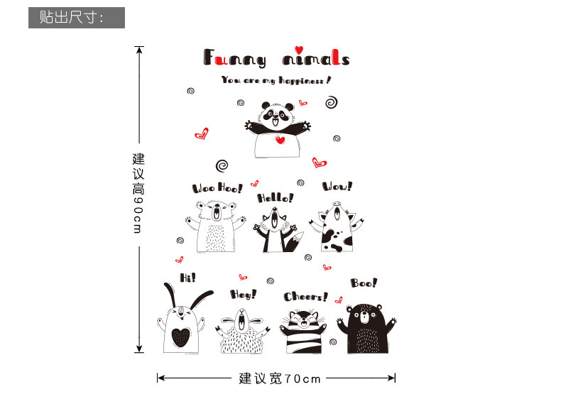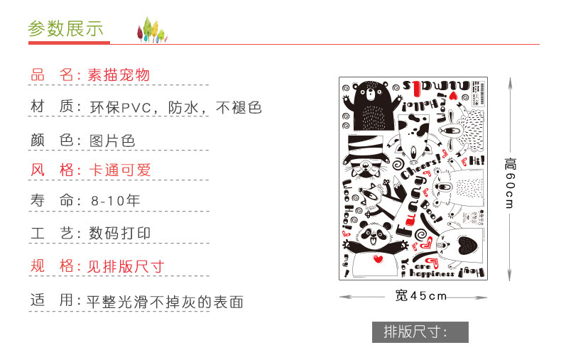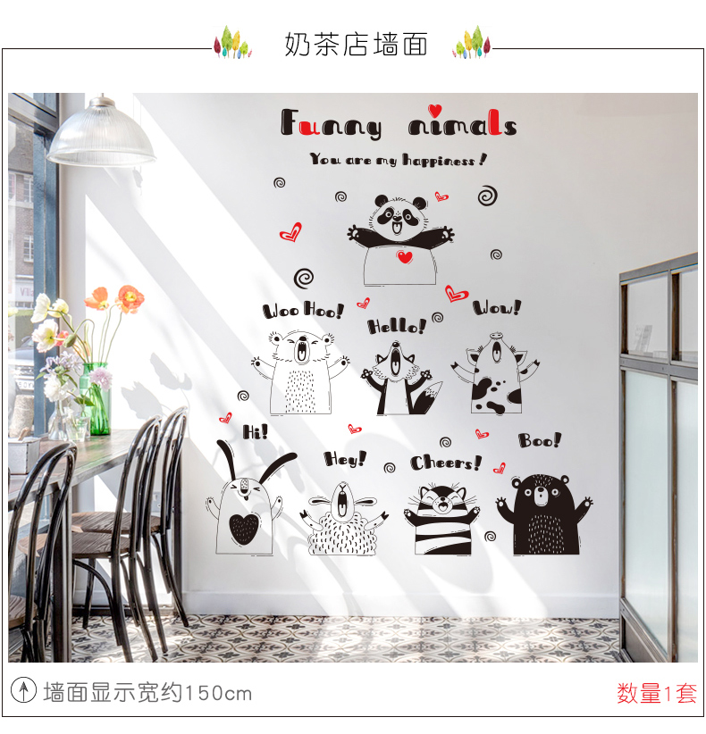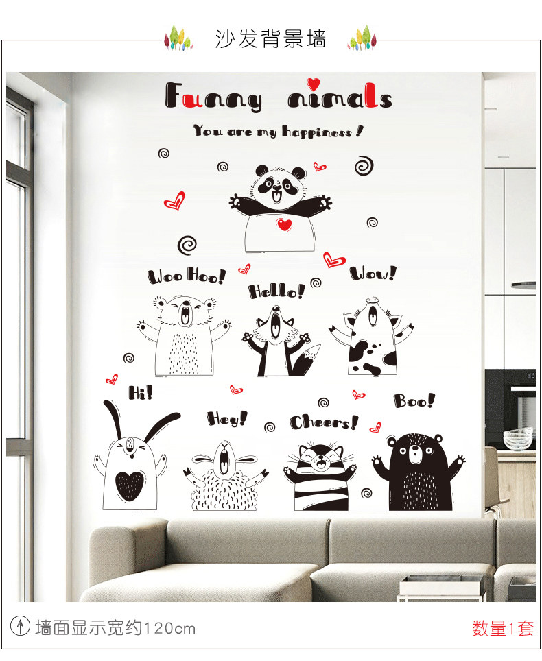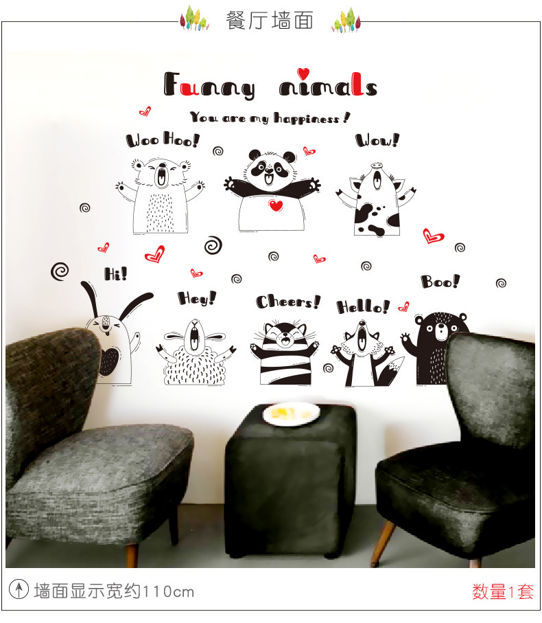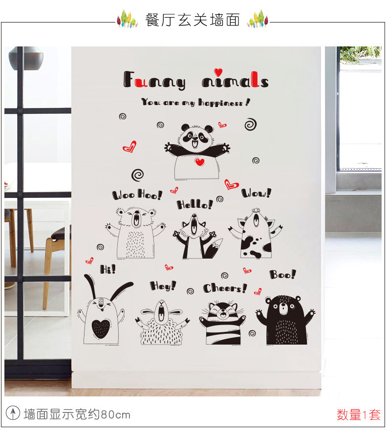 素描宠物卡通儿童房卧室走廊装饰品可爱文艺墙贴纸创意幼儿园贴画
