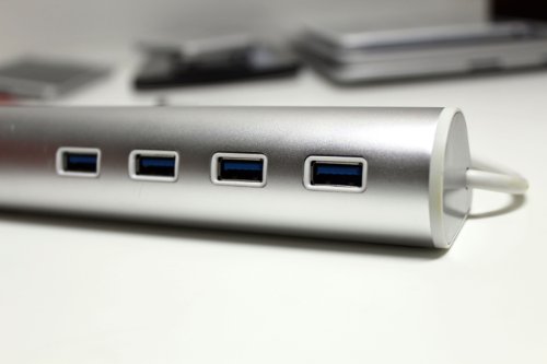 -. Feature : 2 in 1, computer stand and high speed 4 port USB 3.0 HUB for MacBook Air, MacBook Pro, MacBook, Laptop, Notebook (For Laptop and Notebook, please make sure that your laptop is equipped with an USB port on the left side of your computer - cable length: 9 inch) / Sleek Aluminum Design with high speed USB 3.0 port. Transfer Rate : Up To 5Gb/s / Adds four additional USB ports and allowing you to connect USB devices including digital cameras, phones and more (note: External hard-drives should be connected to an external power source) / Plug and play - does not require any software, drivers, or complicated installation process. / Includes a removable USB Type-C Adapter (Effective 9/16/15). Backwards compatible with USB 2.0, 1.1