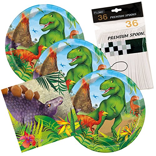 -. Title : Dinosaur T Rex Party Themed Dessert Plates And Napkins includes Spoons Serves 32