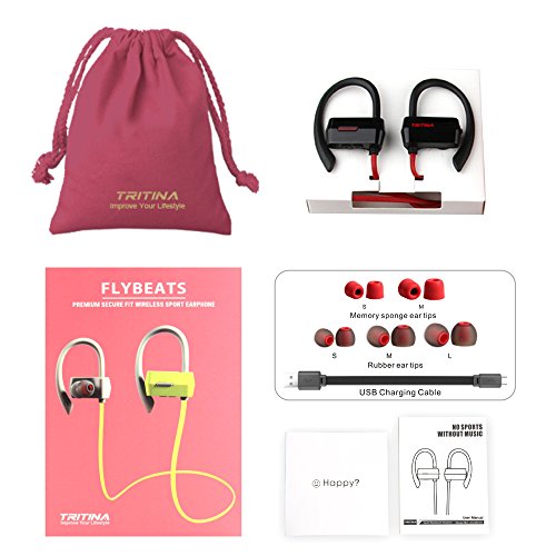 Tritina Sport Headphone - Wireless Bluetooth with Microphone HD Stereo Noise Cancelling Earphone for Running Workout, Jogging [Black]