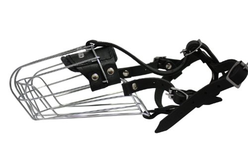 Wire Cage & Leather Muzzle (Miami). Size D2, Black. 11.5" circum., 5.25" length. For longer snouts: Doberman Pinschers, Shepherd, Collies, Pointers