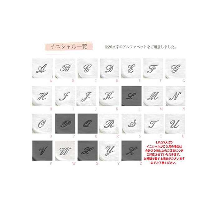 【선택할 수 있는 이니셜】26문자부터 선택할 수 있습니다.선택 항목의「사이즈」보다 수놓는 알파벳을 선택해 주세요.※L,P,Q,V,X,Z가 비용의 경우는 합계30 매이상의 주문에 대응하겠습니다.시간을 요될 수 있습니다.