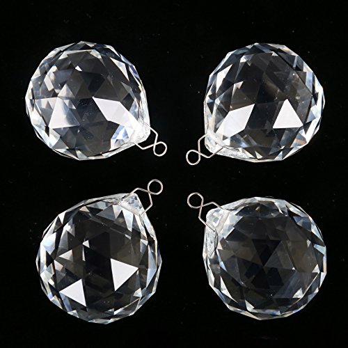 Saint Mossi 30mm Clear Crystal Ball Prism Faceted Hanging Pendant Suncatcher for Feng Shui / Divination or Wedding/Home/Office Decoration (4-Pack)