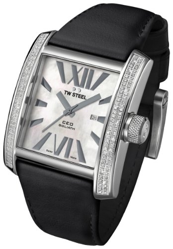 -. Title : TW Steel CE3015B Men's CEO Goliath Diamond Accented Bezel MOP Dial Black Leather Strap Watch