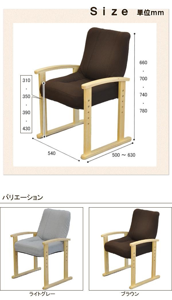 | サイズ | W540×D500~630×H660・700・740・780mm 個装サイズ:53×49×26cm |