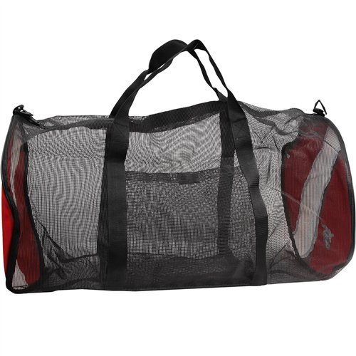-. Feature : Armor Dive Flag Mesh Duffel Mesh Bag / Proudly Says DIVE! / Traditional Red & White "Diver-Down" Flag On-End / Red PVC Coated 600D Polyester Mesh Bag