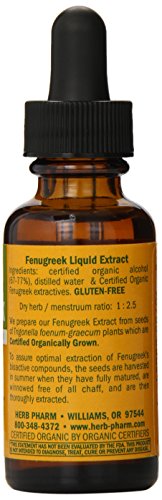ReleaseDate : 2013-08-16 Studio : Herb Pharm Publisher : Herb Pharm Binding : Health and Beauty Product Description Support the female reproductive system with Fenugreek liquid extract from Herb Pharm. We prepare our Fenugreek Extract from seeds of Trigonella foenum-graecum plants which are Certified Organically Grown without the use of chemical fertilizers, pesticides or herbicides. To assure optimal extraction of Fenugreek's bioactive compounds, the seeds are harvested in late summer when they have fully matured, are winnowed free of all chaff, and are then thoroughly extracted. Seek expert medical advice before taking during pregnancy. 0