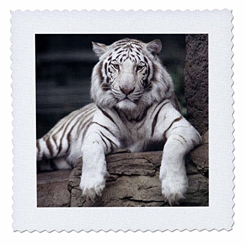 3dRose qs_88641_4 White Tiger at The Sacramento Zoo, California US05 TAU0014 Tananarive Aubert Quilt Square, 12 by 12-Inch