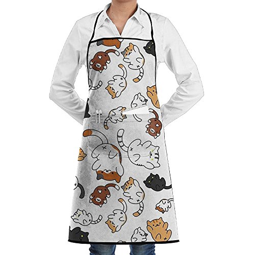-. Title : かわいい猫 エプロン ポケット付 フリーサイズ 首掛け 男女兼用 キッチン カフェ風 保育士 雑貨屋店員 料理 絵画 防水 防油