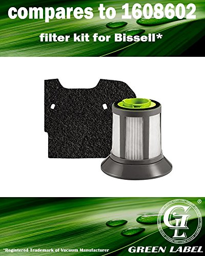 For Bissell Filter Pack, Fits Zing Bagless Canister 1664, 1665, 1669 series. (1608602). Designed and Manufactured by Green Label.