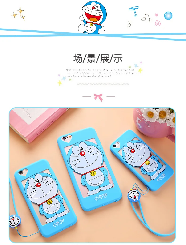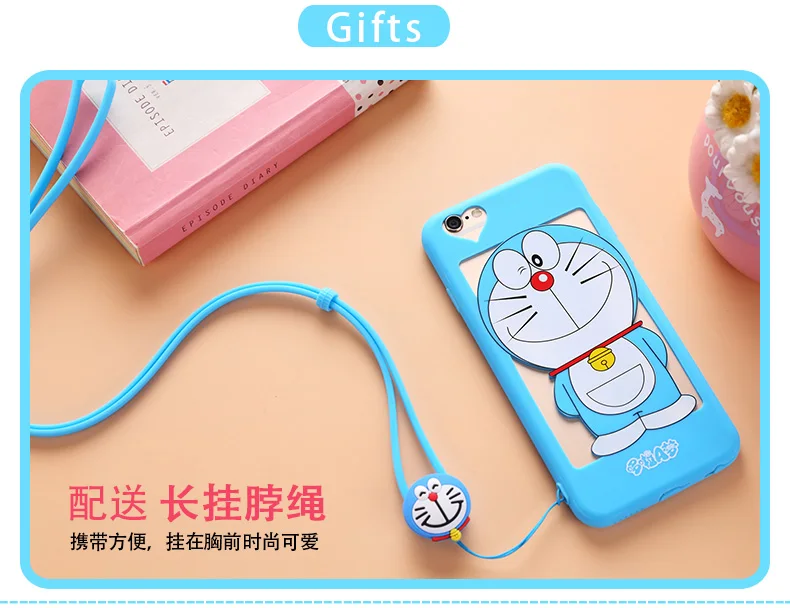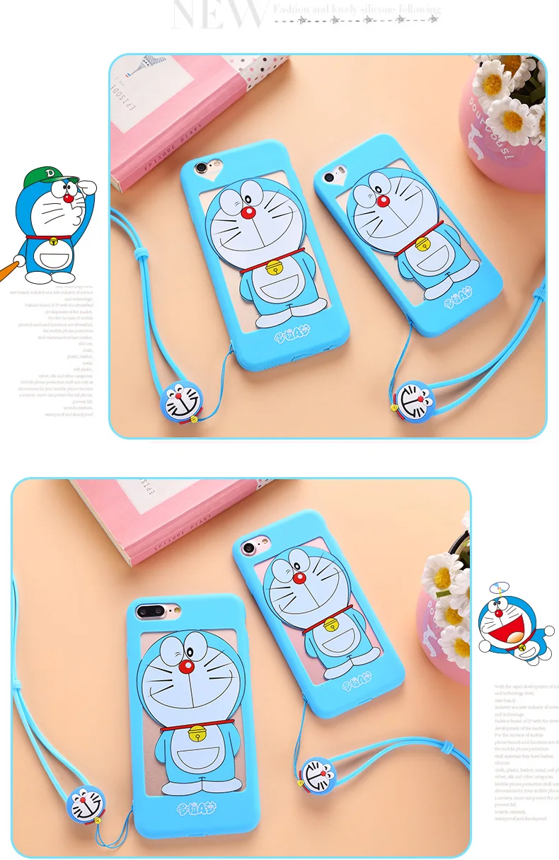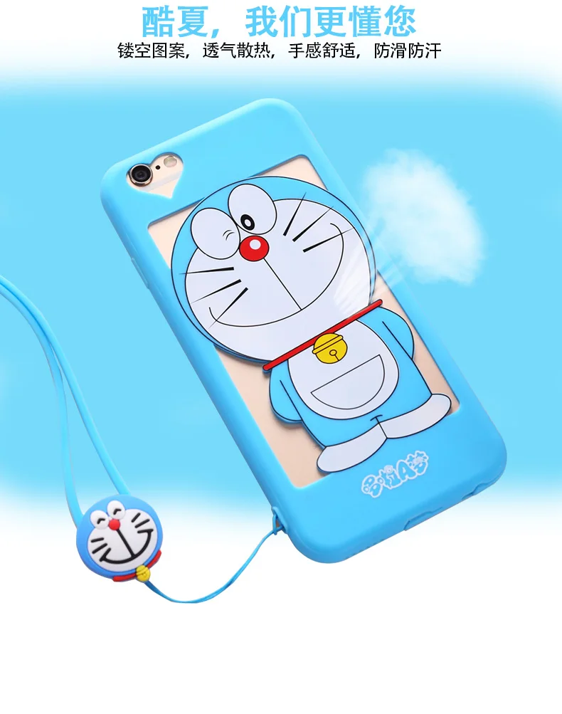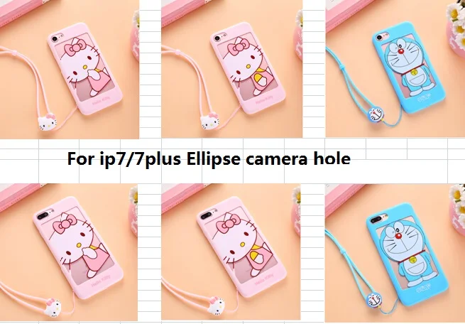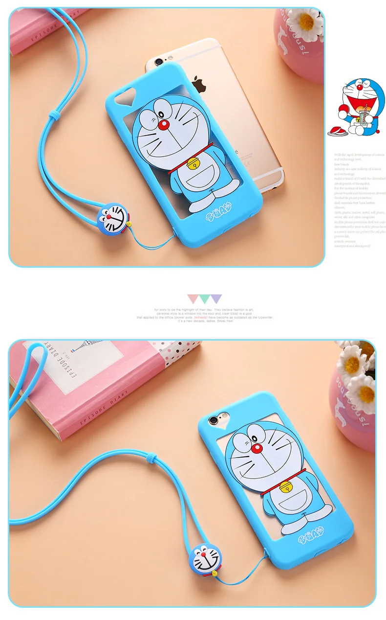 iphone用7/7プラス中空ドラえもんケースiphone用5 5 sのためのiphone 6 6 sプラスソフトカバー漫画ピンクガール猫女性ケース+ロープ送料無料