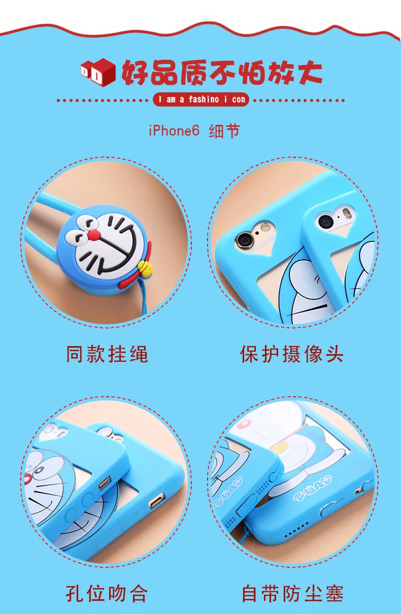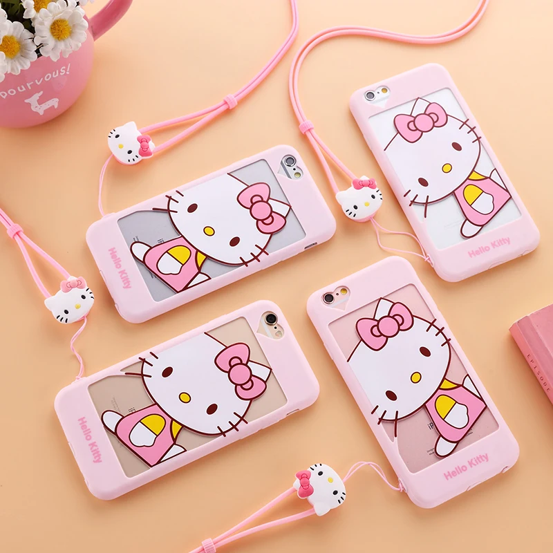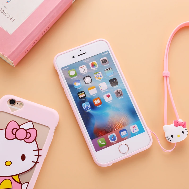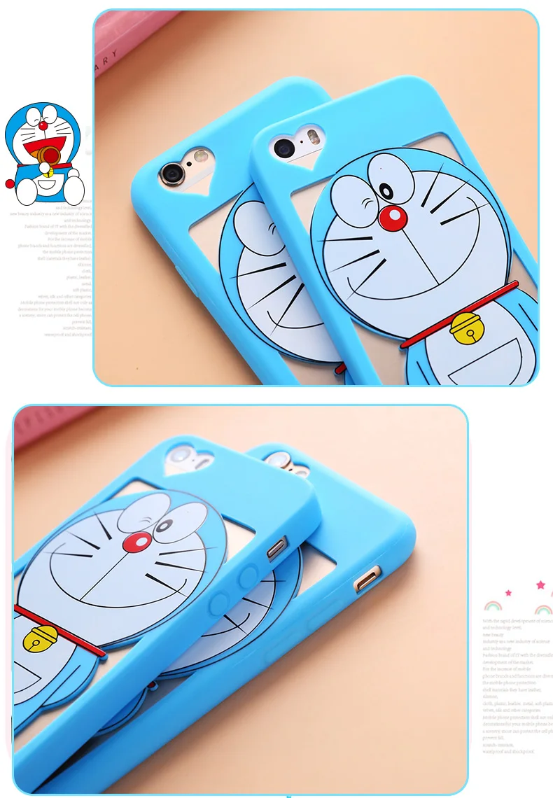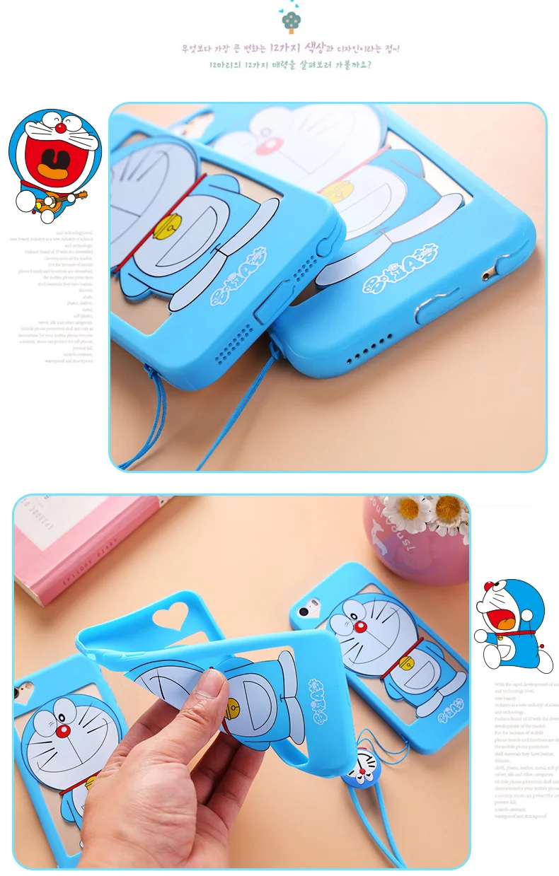 iphone用7/7プラス中空ドラえもんケースiphone用5 5 sのためのiphone 6 6 sプラスソフトカバー漫画ピンクガール猫女性ケース+ロープ送料無料