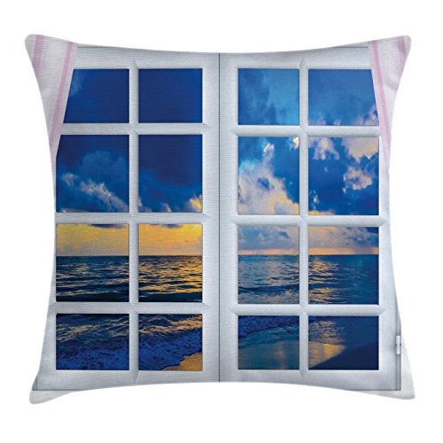 (Ambesonne)/Bedding Bath/Bedding/DIRECT FROM USA/Landscape Throw Pillow Cushion Cover by Ambesonne, Sunset on the Sea Scenery from Window with O...
