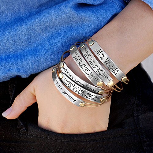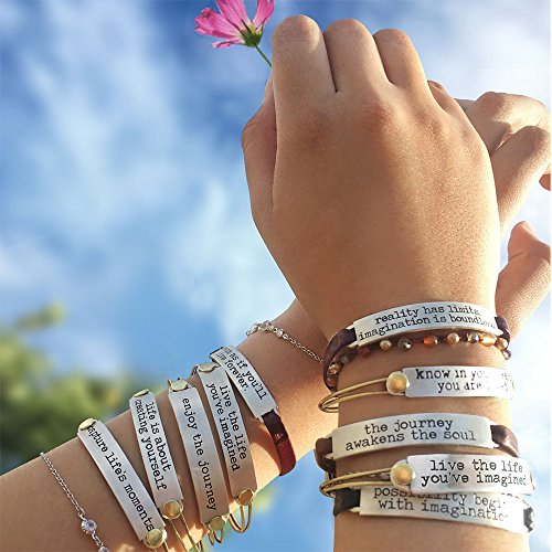 Inspirational message bracelets transmit good vibes and inspire positive energy. Wear them to amplify determination, self-affirmation and to sustain hope and perseverance. As a gift, each imparts a truism for keeping the faith and broadening your perspective.