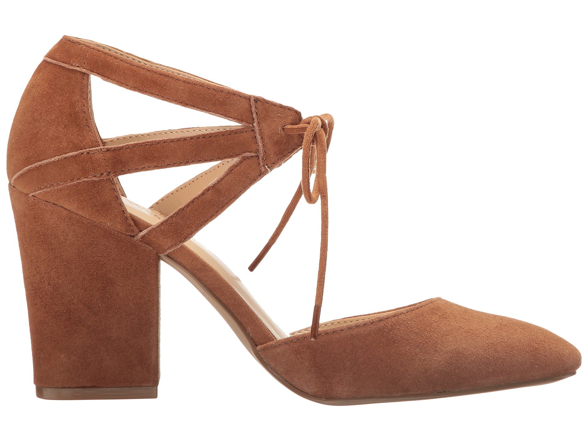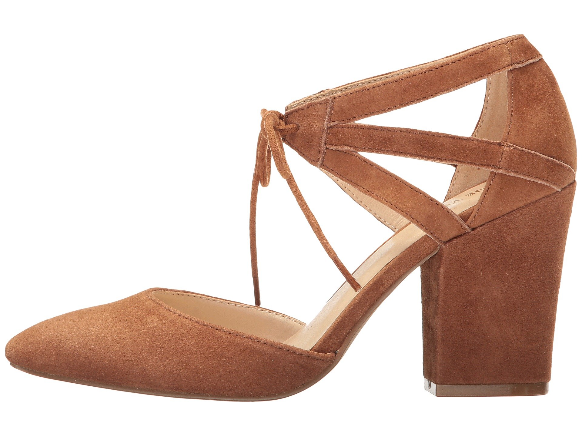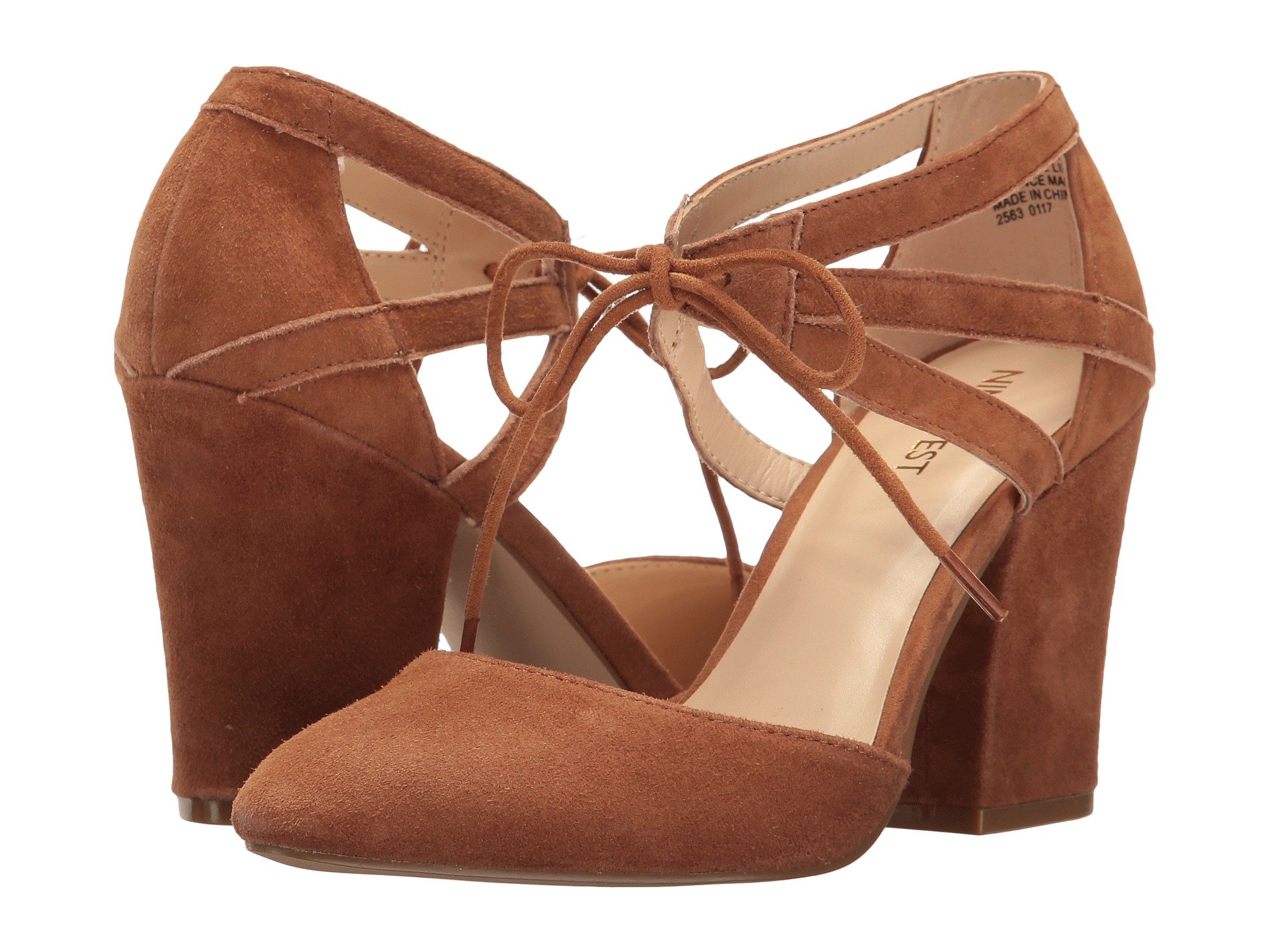 | Product Information SKU: #8894463Rule the empire wisely in the Nine West? Sabiniano pumps.Suede upper.Lace-up closure.Almond toe.Man-made lining.Lightly padded footbed.Wrapped block heel.Man-made sole.Imported.Product measurements were taken using size 8, width M. Please note that measurements may vary by size.Weight of footwear is based on a single item, not a pair.Measurements: Heel Height: 3 1?4 in Weight: 10 oz |