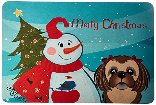 Caroline's Treasures BB1869JCMT Snowman with Chocolate Brown Shih Tzu Kitchen or Bath Mat, 24 by 36", Multicolor