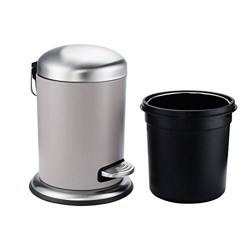 - Trash Can with finger-print proof lid-Capacity 5L/1.3Gallon size 6.7*8.4*11.4 inch, plastic base prevent scratch on your delicate floor, the hinged lid helps hidden trash from public view present a neat and clean appearance for your beloved home