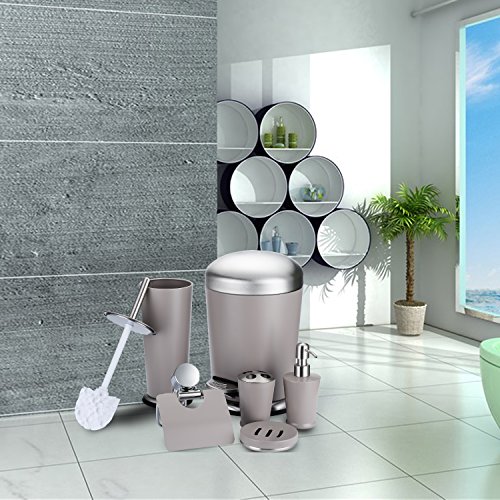 Bathroom Accessories Set, Malmo 6pcs Stainless Steel Lotion Dispenser, Toothbrush Cup, Tissue Holder, Soap Dish, Trash Can, Toilet Brush