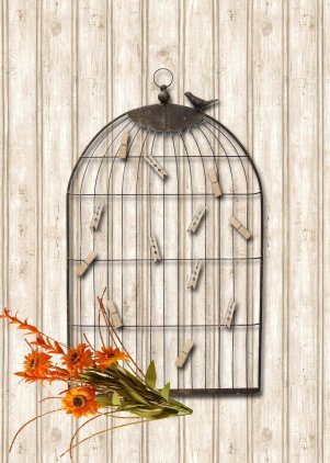 Your Heart's Delight Bird Cage with Wooden Clips Wall Decor, 22-1/2 by 35-1/2-Inch