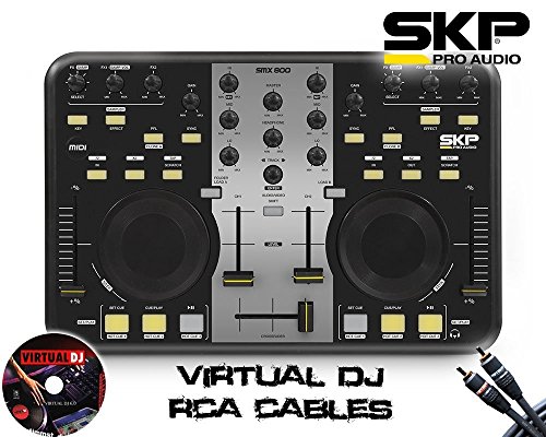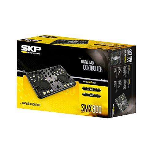 SMX SKP 800 MIDI CONTROLLER WITH AUDIO INTERFACE FOR VIRTUAL DJ 2 CHANNEL MIX 2 WHEELS FOR TOUCH SENSITIVE SCRATCH, PITCH BEND AND SEARCH NODES CONTROL FOR BASS, TREBLE AND INDEPENDENT MEDIA IN CANAL (CHANNEL) FADE TO PITCH SLIDER ILLUMINATED BUTTONS LINEAR SLIDE FADE, FADER CONTROL EFFECTS, LOOP CONTROL WITH INPUT AND OUTPUT HEADPHONE OUTPUT MONITORING 3,5MM OUTPUT CONTROL MASTER VOLUME, HEADSET, EFFECTS AND EARNINGS PER CHANNEL HOT CUE COMPATIBLE WITH PC AND MAC!Feature