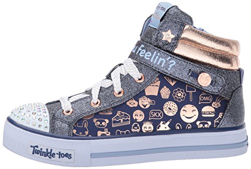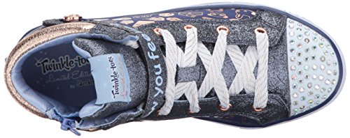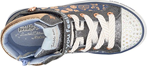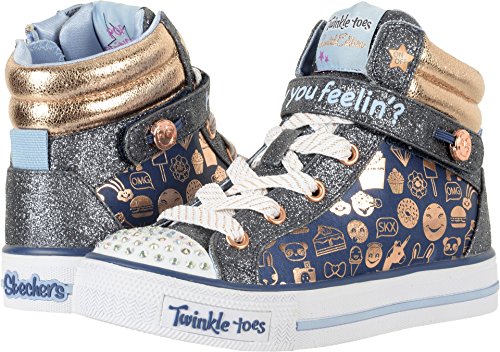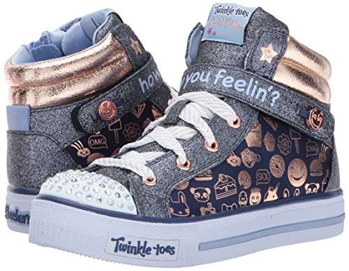 SKECHERS KIDS Girl's Shuffles 10828L Lights (Little Kid/Big Kid) Navy/Gold Shoe