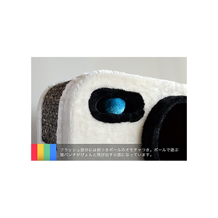 카메라형의 본체는 MDF보드를 성형,표면에《모후모후》포,올라타거나 손톱이 걸리는 부분은 튼튼한 마유켕김(팽팽하게 땅김/의욕)가 되고 있습니다.플래쉬 부분은 파란 방울부 볼의 장난감이 되고 있습니다.