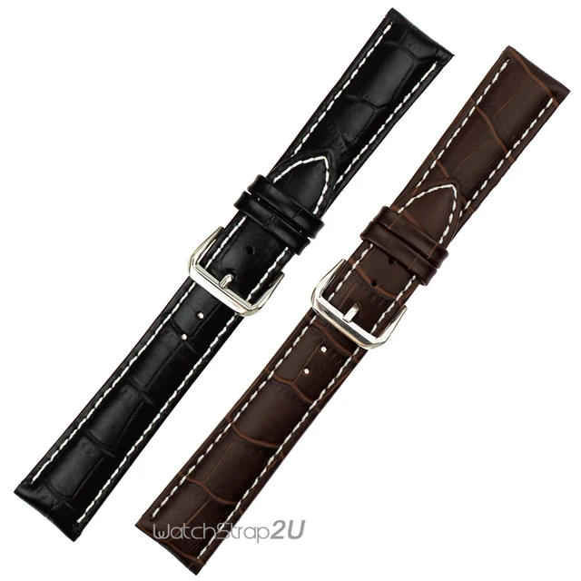 [해외]화이트 스티치 블랙/브라운 악어 곡물 가죽 시계 밴드 스트랩 핀 버클 18 ~ 24 미리메터
