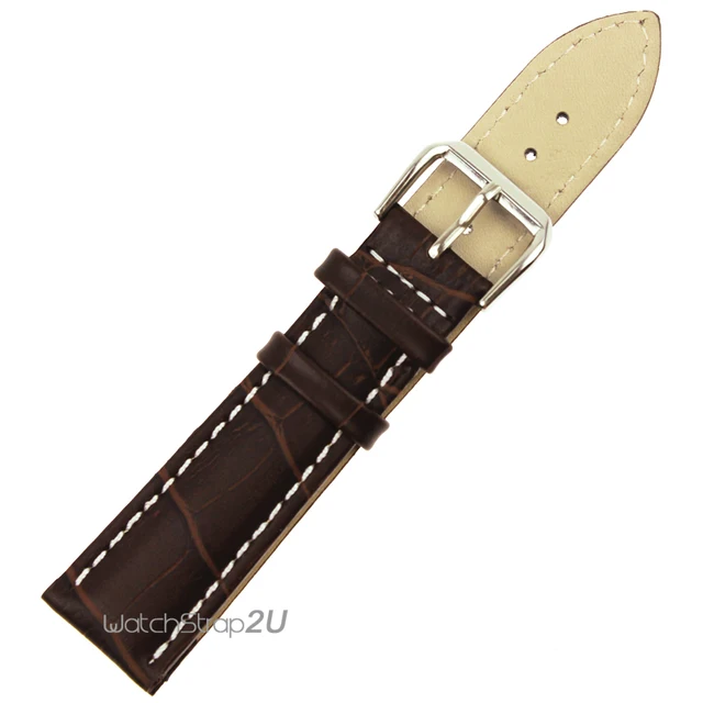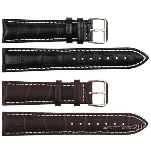 화이트 스티치 블랙/브라운 악어 곡물 가죽 시계 밴드 스트랩 핀 버클 18 ~ 24 미리메터