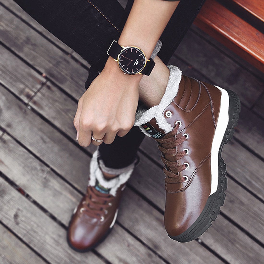 It is a fashionable engineer boots style snow boots with lightweight design combining the functions necessary for winter protection and waterproofing in winter.