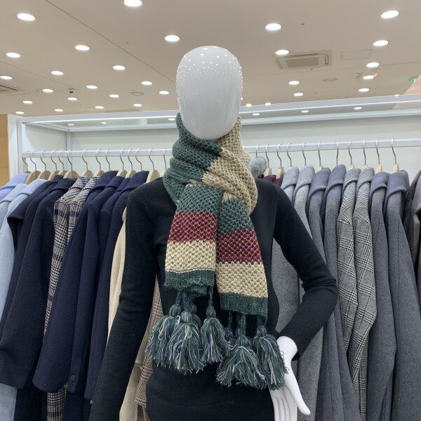 태슬니트머플러예요^^예쁜 색감의 배색에 적당한 두께감과 짜임으로 센스있는 겨울 코디를 연출 해주는 패션아이템입니다!총기장_ 약 200cm / 폭 넓이 _ 약 43cm