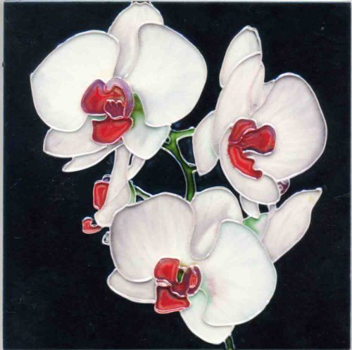 Continental Art Center BD-2079 8 by 8-Inch Three White Orchids with Red Center Ceramic Art Tile