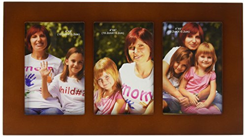 Adeco 3 Opening Decorative Walnut Wood Wall Hanging Collage Picture Photo Frame - Made to Display Three 4x6 Photos