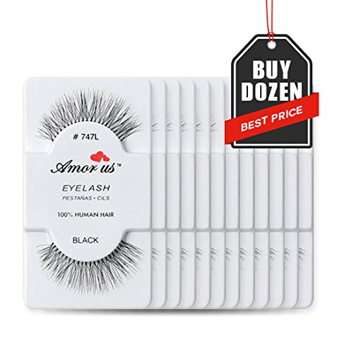 Amorus 12 Pairs Multipack #747L False Eyelashes Dozen Set 100% Natural Hair Black Handmade Comfortable Reusable Fake Lashes Pack