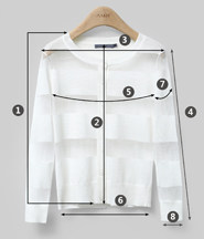 | 尺码 | ①前衣长 | ②后中长 | ③肩宽 | ④袖长 | ⑤胸围 | ⑥下摆围 | ⑦袖臂围 | ⑧袖口围 | ||