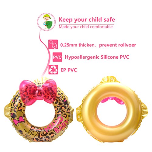 ?Item: Cute Bowknot Leopard Pool Swim Ring for Kids ?Intend Use: Pool party or daily use ?Material: Hypoallergenic and soft thicken health PVC