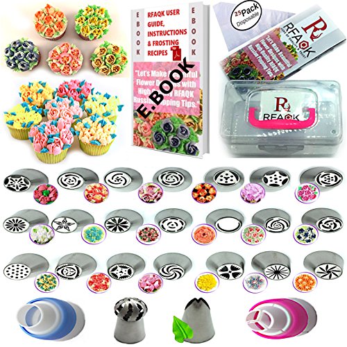 ✅ USER GUIDE E. BOOK & 100% CUSTOMER SATISFACTION GUARANTEE: You will get User Guide E. Book (Bonus Gift) which includes step by step instructions to use Russian tips with images, Top 3 tested frosting recipes which works perfectly with Russian tips plus cake decoration ideas. We Guarantee that you will love our Russian piping tips set.100% Money Back Guarantee within 30 days of Purchase. Can’t wait anymore to watch you decorating cakes with RFAQK tips!