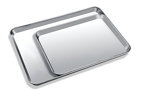 【Multi Size】Set of 2, Perfect to be used as cookie sheet or baking sheet for your regular oven and toaster oven, Large 16 x 12 x1 inch, Medium 12 x 10 x 1inch