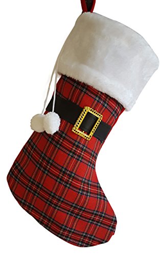 Santa Belt Christmas Stocking- Plaid- Set of 3