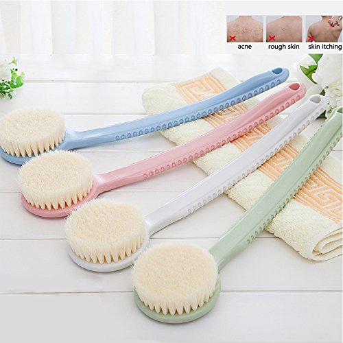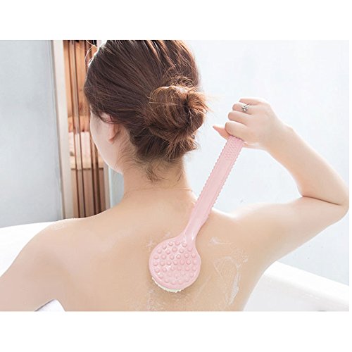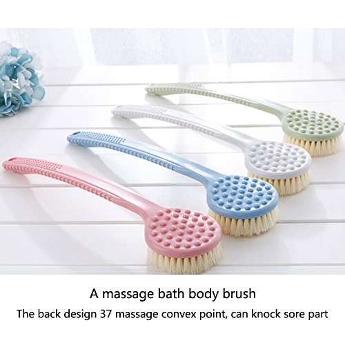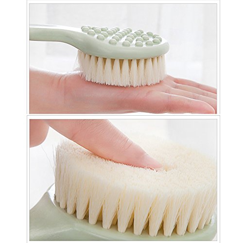 - Long Handled Brush with Non Slip Ridges and Specially Angled for Back Scrubbing. Back Have 37 Convex Point For Massage.Medium Bristles For Exfoliating Skin.