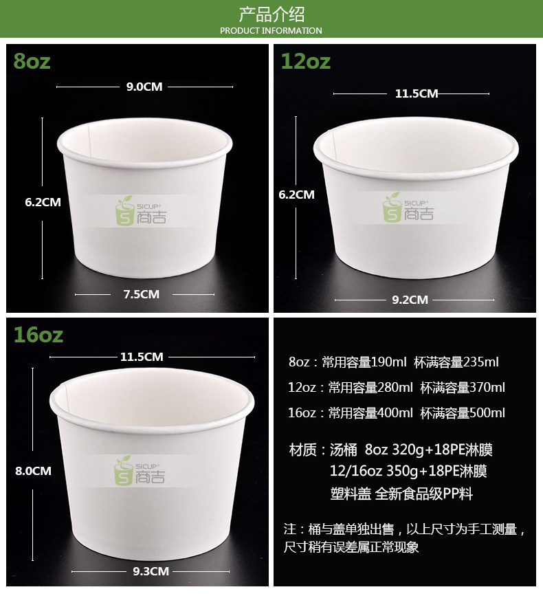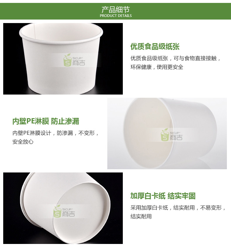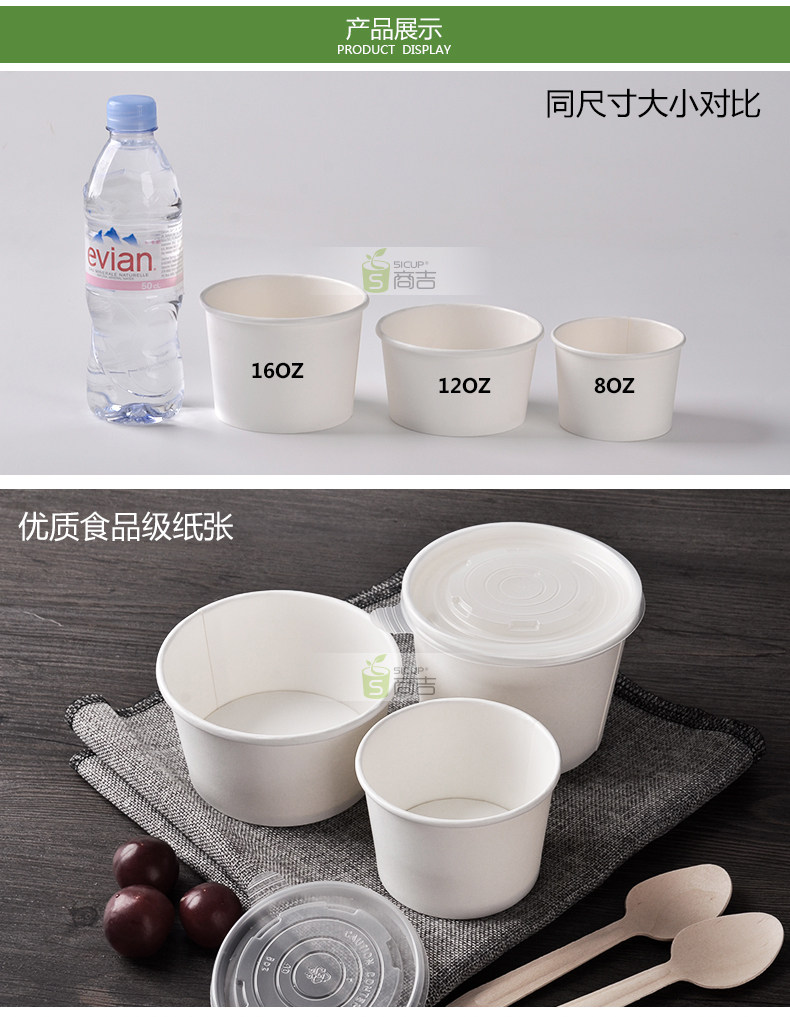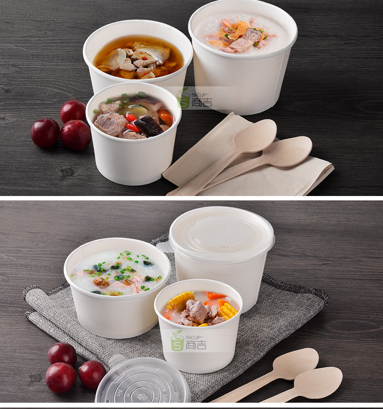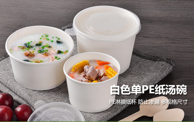 商吉纸汤碗一次性纸碗汤杯粥杯外卖打包碗圆形盒加厚不带盖100只