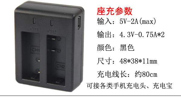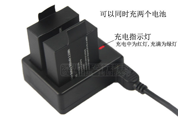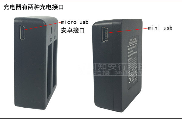 The new dual charger can also charge two mountain dog battery, charger is the Andrews interface on the left, the right is the mini usb interface, with a mini-line.