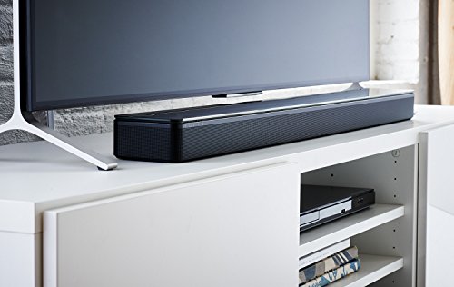 You want big, room filling sound without having to sacrifice valuable room space. That's why Bose engineered the sound touch 300 sound bar to deliver clear, spacious sound in a slim, space-saving package. Every cubic inch of this speaker is packed with technologies that bring your music and movies to life in a big way. It starts Inside with custom-shaped speakers that keep the profile low and pump out big sound. Quieter technology virtually eliminates distortion so you hear surprisingly Deep bass. Adapted audio room calibration ensures the sound bar sounds the best it can in the space you put it, while waveguide technology makes you believe you're hearing sounds where there are no speakers. on the outside, the glass top and perforated wrap-around metal grille make the sound bar look as good in your room as it sounds. Bluetooth and Wi-Fi technology are built in, so you can wirelessly stream music any way you prefer, while NFC provides quick and easy pairing. When you want to stream music, the sound touch app gives you simple control over your favourites. And the sound touch 300 sound bar Works together with other sound touch speakers, like a family. You can start with the sound touch 300 and add other sound touch speakers when you are ready, so you can play the same music in multiple rooms, or different music in each room. And while the sound touch 300 sound bar sounds great by itself, you can add the acoustics 300 wireless bass module and/or virtually invisible 300 wireless surround speakers at anytime to get even more performance and a full 5.1 experience. Place the sound bar on a table below your TV, or save even more space by using the optional wall bracket. It's all run by a universal remote, so you can control your other devices, too. Included: sound touch 300 sound bar; universal remote.Feature